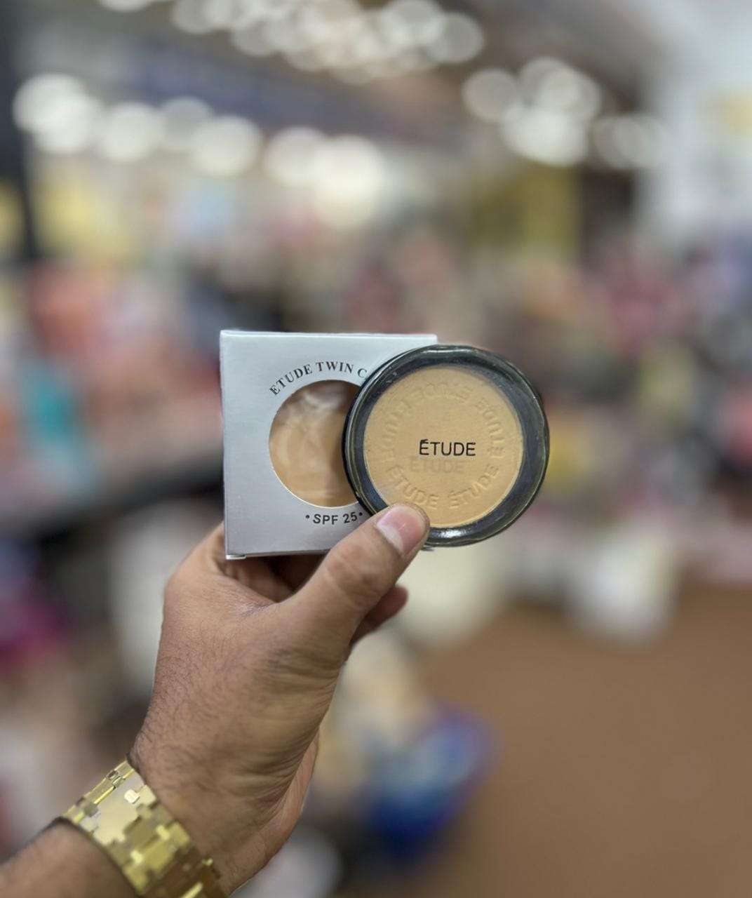 - Etude Twin Cake Face Powder is a two-in-one compact powder that provides both coverage and sun protection. The powder is available in a range of shades to match different skin tones.