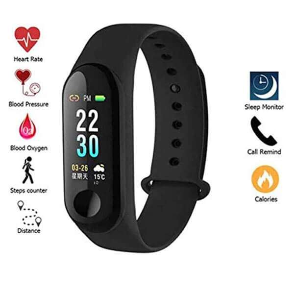 • M3 Smart Fitness Bracelet is  Compatible with both Android & iOS Devices Dynamic Heart Rate Monitor Pedometer, Calories & Sleep Monitoring Water Resistant Activity Tracker Present time. Steps: Record your steps Mileage: Mileage of sports. SMS: Bluetooth Sync Reminders
