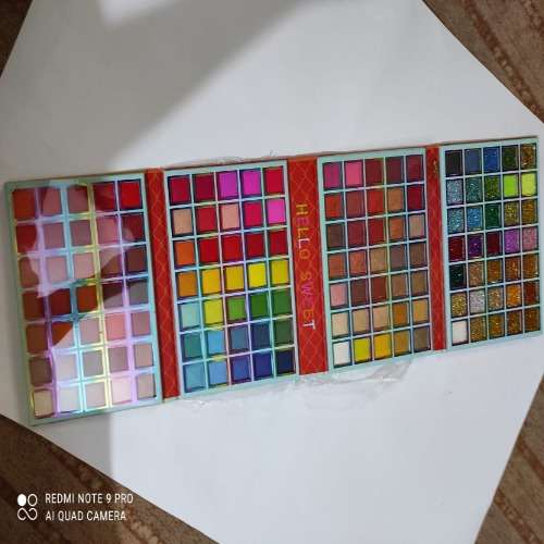 - The Eyeshadow palette features four different sections, each containing a range of shades in different finishes, such as matte, shimmer and glitter. The colors are highly pigmented and blendable, allowing you to create a variety of looks. The palette is also easy to use and is perfect for both professional and personal use.