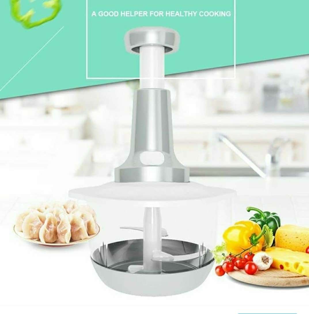 The Multifunctional Hand Press Double Blade Meat Mincer Vegetables Grinder is a versatile kitchen tool that is designed to chop and mince a variety of foods quickly and easily. This appliance features a push-type vegetable chopper that can be operated with a simple downward press of the handle.