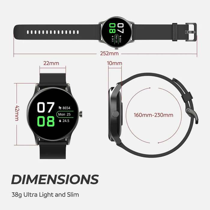 - Weight: The Soundpeats Watch 2 Smartwatch : IP68 Water Resistant weighs just 38g, making it comfortable to wear throughout the day.