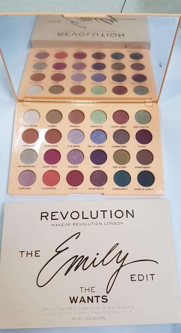 - Revolution emily palette Contains a variety of 24 shades, from neutral to bold, to create a range of eye looks